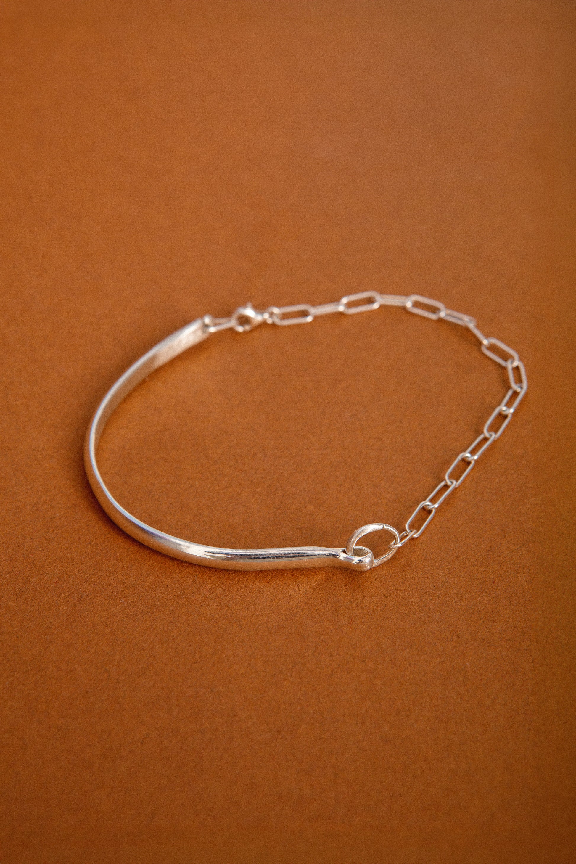 • A mix of solid cuff and flowing chain